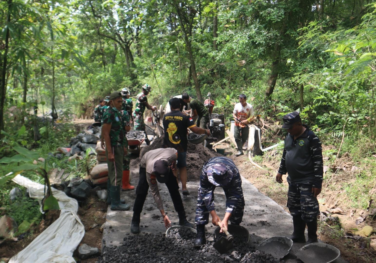 Salah satu sosok yang menonjol adalah Serka Sarjono, personel dari Pangkalan TNI AL (Lanal) Tegal. Sebagai Bintara Pembina Potensi Maritim (Babinpotmar) Posal Kluwud, ia biasanya berfokus pada pembinaan masyarakat pesisir. Namun, dalam program TMMD kali ini, ia membuktikan bahwa dedikasi prajurit TNI bersifat universal, melintasi batas wilayah perairan hingga ke pelosok daratan.